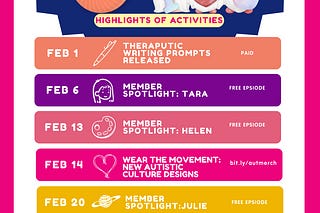 Check out our February activity calendar! Check out this month's Virtual Writing Circle, Book Club, Educational Workshop for our paid members.