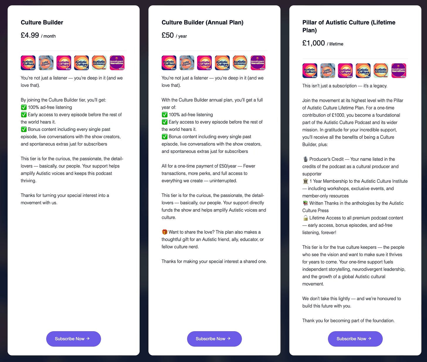 Listen to our shows anywhere you get your podcasts. Or upgrade to Autistic Culture Plus, where you’ll get: