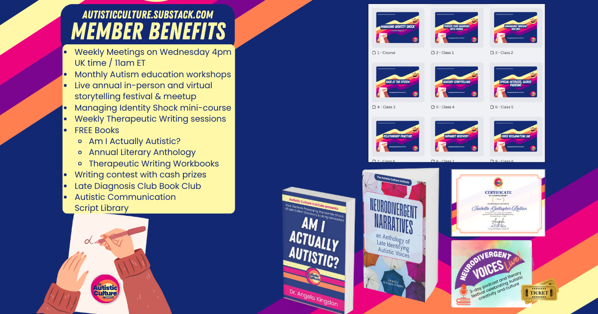 If you are not already a supporting member, just click upgrade in the top right hand corner on the AutisticCulture.substack.com page, or get some Autistic Culture Merch on sale right now and share your purchase and we will give you a free upgrade for the month.