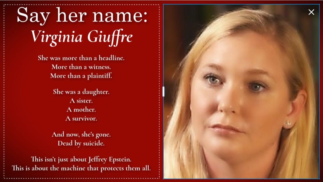 You can also see how impossible she found it to understand manipulation and disloyalty even at the time of writing the book before she died. When she was younger she kept going back to Ghislaine and Epstein. Okay, maybe dismissed by her youth and trauma. But then in her late 20s as a mom of 3 she went back to her dad who abused her (and continued to) and her mom who did not protect her - multiple times. And her final undoing and her worst abuser of all was her husband Robbie. He cock-blocked Epstein and stole Virginia (just like Epstein stole her from Trump) but she was just trafficked again. She didn’t see how obviously controlling he was from the beginning.