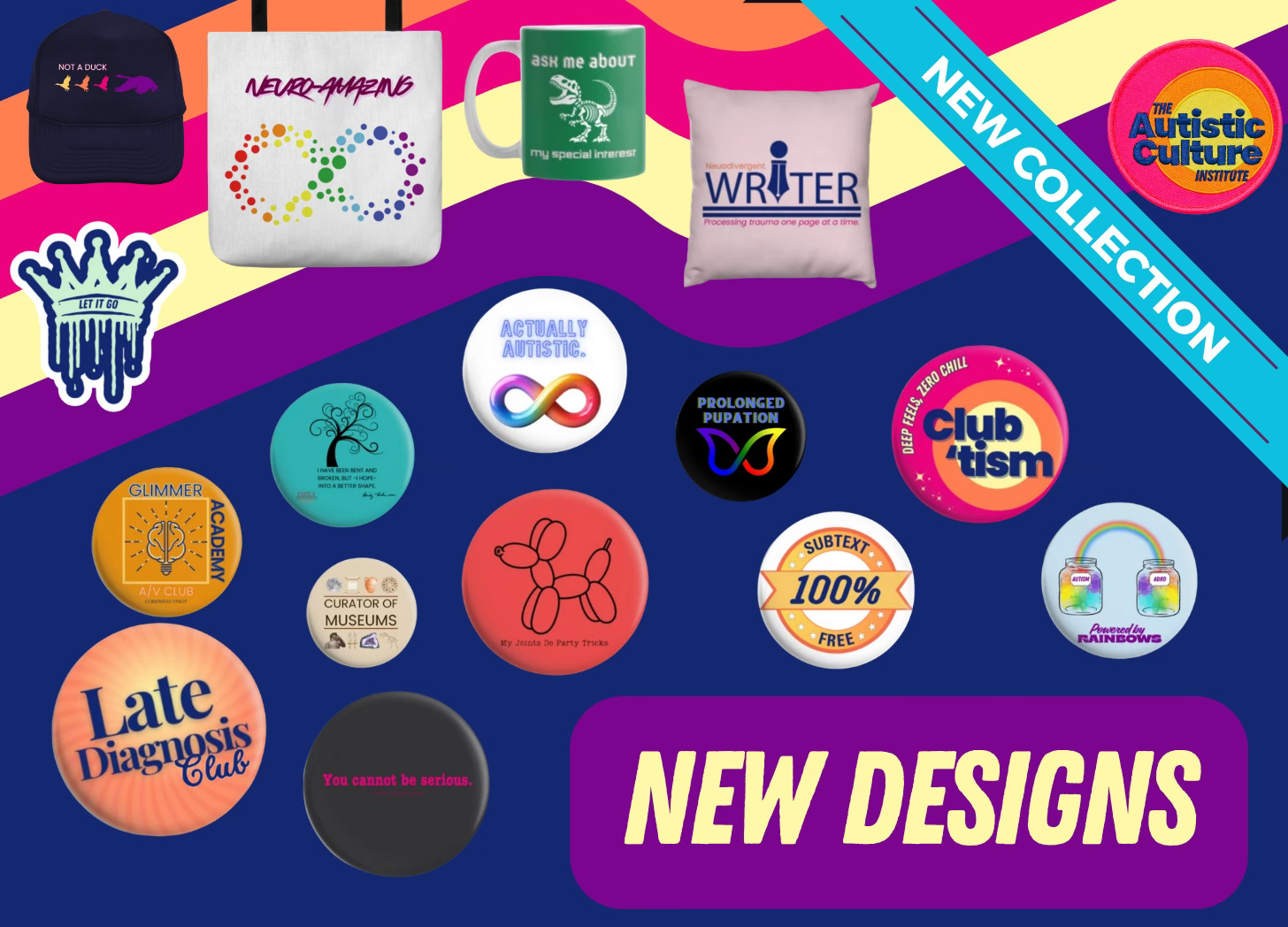 This October, we’re celebrating the official launch of my book Am I Actually Autistic? (also on Amazon), our new season of the Late Diagnosis Club podcast (coming on Halloween!) and new designs on the The Autistic Culture Merch Shop. From loud and proud t-shirts and hoodies to tote bags, easier to conceal stickers, magnets, mugs, and pins, every design in this collection was created to spotlight the wit, strength, and style of Autistic identity.